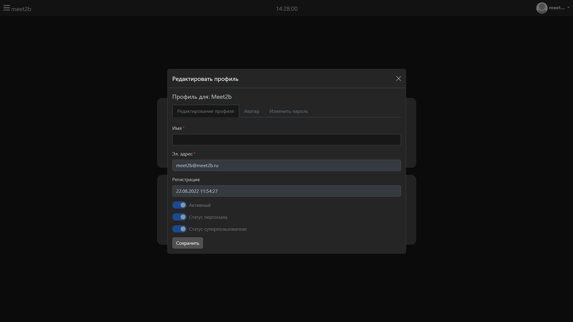 В управлении профилем пользователю доступно редактировании и просмотр информации. Редактирование разделено на 3 основные вкладки: