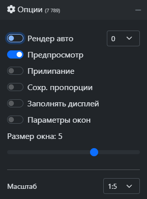 Данная опция предназначена для оптимизации размеров canvas и позволяет предоставить стабильную работу на слабых клиентах. Масштабы представлены от 1:1 до 1:10.